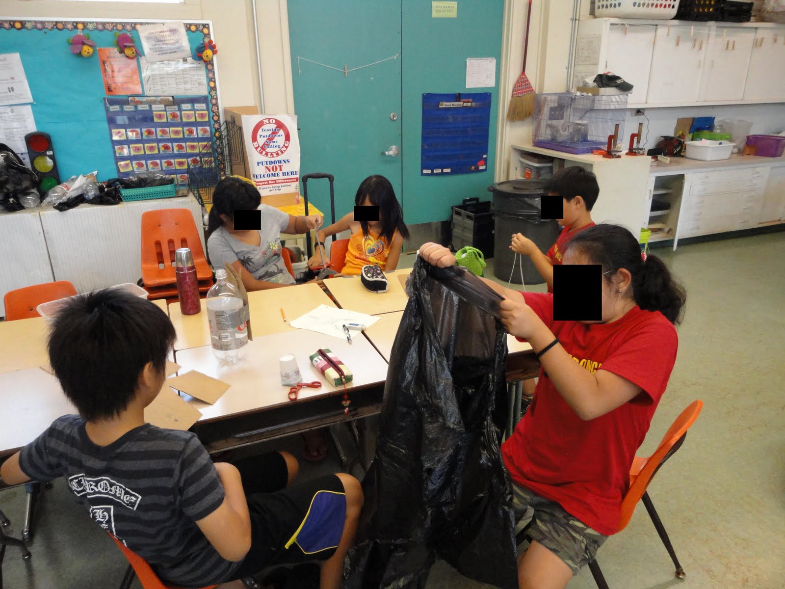 The children were busy at work, putting the last touches on their rockets.